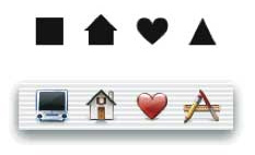 Когда-то у Apple в гайдлайнах было упоминание и иллюстрация о формах иконках на тулбарах. Цитирую: «Each toolbar icon should be easily and quickly distinguishable from the other items in the toolbar. Toolbar icons emphasize their outline form, rather than subtler visual details.» В текущей версии этого нет, но цитата с иллюстрацией обнаружилась в обзоре Mac OS X Tiger: http://arstechnica.com/reviews/os/macosx-10-4.ars/3 (в конце страницы, господа).
