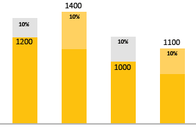Мне кажется, удобнее представить данные в виде таблицы. Я бы отказался и от графического оформления, остановившись только на цифрах, но если необходимо графическое оформление «для наглядности», то вот мой вариант.