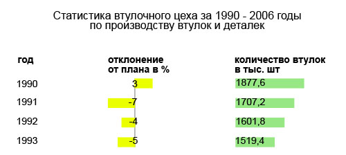 2) ответить на вопрос: что прикольней — падение производства на 100 штук или его увеличение на 1,5%? Второстепенное показать как бы «в скобках», без шкалы;