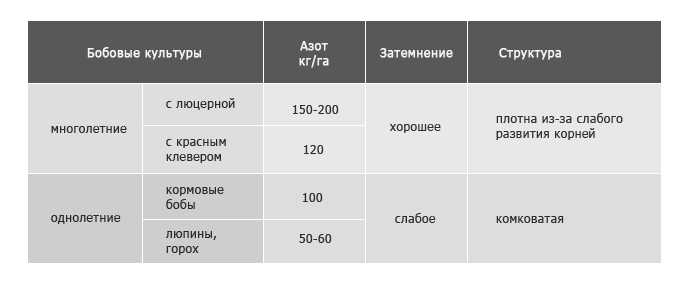 Для многолетних бобовых не совсем понятно, исследовались ли они в чистом виде или только в смеси с травами. Если в чистом виде тоже, то не хватает одной цифры; если только в смесях, то нужно переформулировать заголовки. Я даю примеры для обоих случаев.
