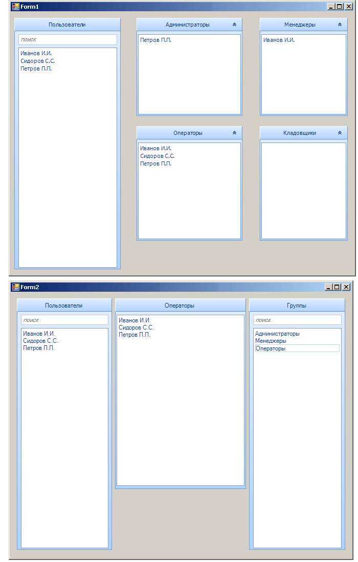 Пишу небольшую учетную систему и решил поработать над интерфейсом, для начала, уйти от надоевших всем списков и деревьев при управлении пользователя и группами.