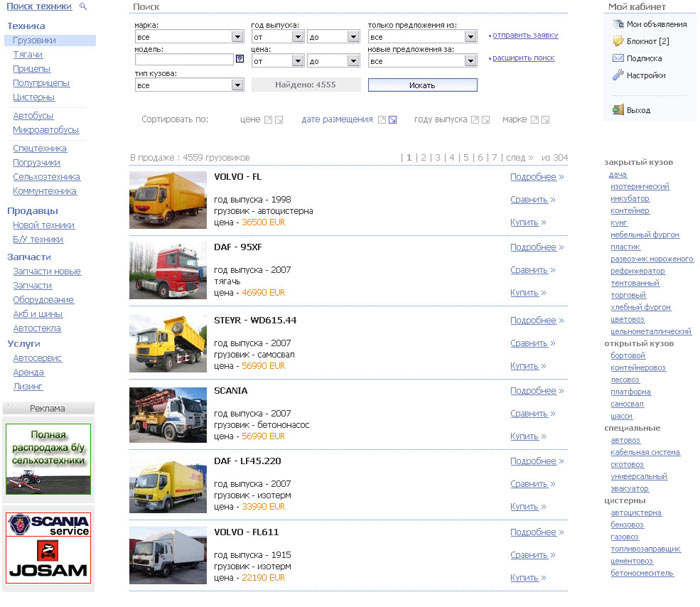 После этого можно подумать о сортировке грузовиков, а затем — о дополнительных фильтрах.