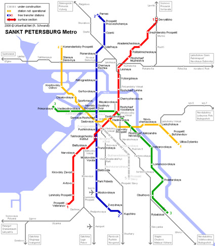 Мне очень нравится карта петербургского метро на urbanrails.net: http://www.urbanrail.net/eu/pet/petersbg.htm |