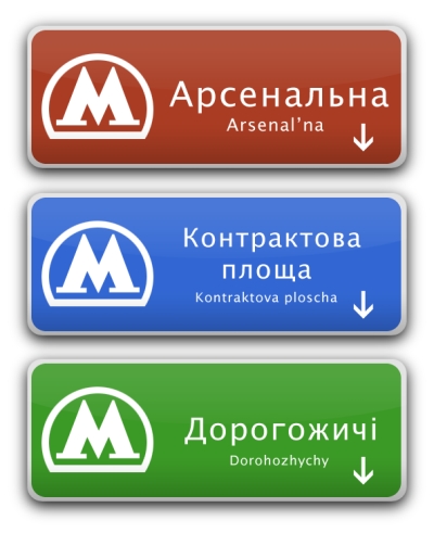Если речь об уличных указателях, то метрополитену будет слишком жирно получить монополию на все цвета табличек. Ваши знаки воспринимаются, скорее, как относящиеся к разным видам транспорта. В Лондоне цвета фирменного кружка означают именно это: Правда, форма этого знака очень узнаваема. Если бы в параллельной реальности лондонский кружок относился