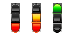 А ещё можно использовать только две секции (см. картинку). Хотя, подобным образом можно делать и на трехсекционных светофорах — лишь бы секции могли светиться всеми нужными цветами.