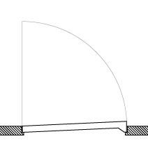 Петли (гипертрофированные, как на рисунке ниже) также могут подсказать, куда открывается дверь. А со стороны двери, где петлей нет, можно добавить явные «стопперы» (уголок, штырь в полу и т. п.), по которым должно быть очевидно, что дверь в эту сторону не откроется вообще никак.