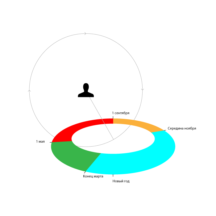 Для одних времена года — это окружность, для других — квадрат, для третьих — прямая (вертикальная, горизонтальная). Для одних время течёт по часовой стрелке, для других — против. Для кого-то лето — сверху, для другого — снизу.