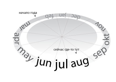 Артём, я год назад проводил опрос среди людей, которые меня окружают (это и программисты, и дизайнеры, и психологи, и учителя), на предмет того, как они визуально представляют себе времена года (и время вообще). Результат меня тогда просто ошеломил. Оказалось, что у людей возникают совершенно разные картинки в голове.