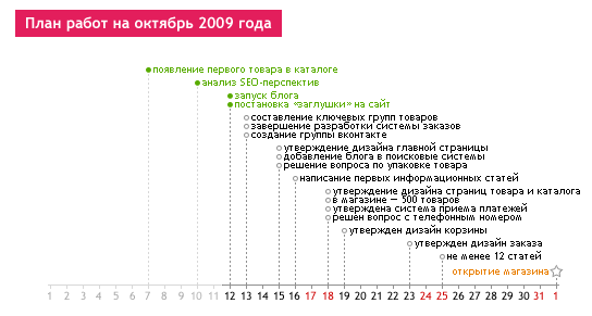 Одна из идей — выкладывать наши месячные планы по открытию и развитию магазина. Единственная проблема: как сделать этот график красивым, удобным и читаемым? Решили спросить совета у вас.