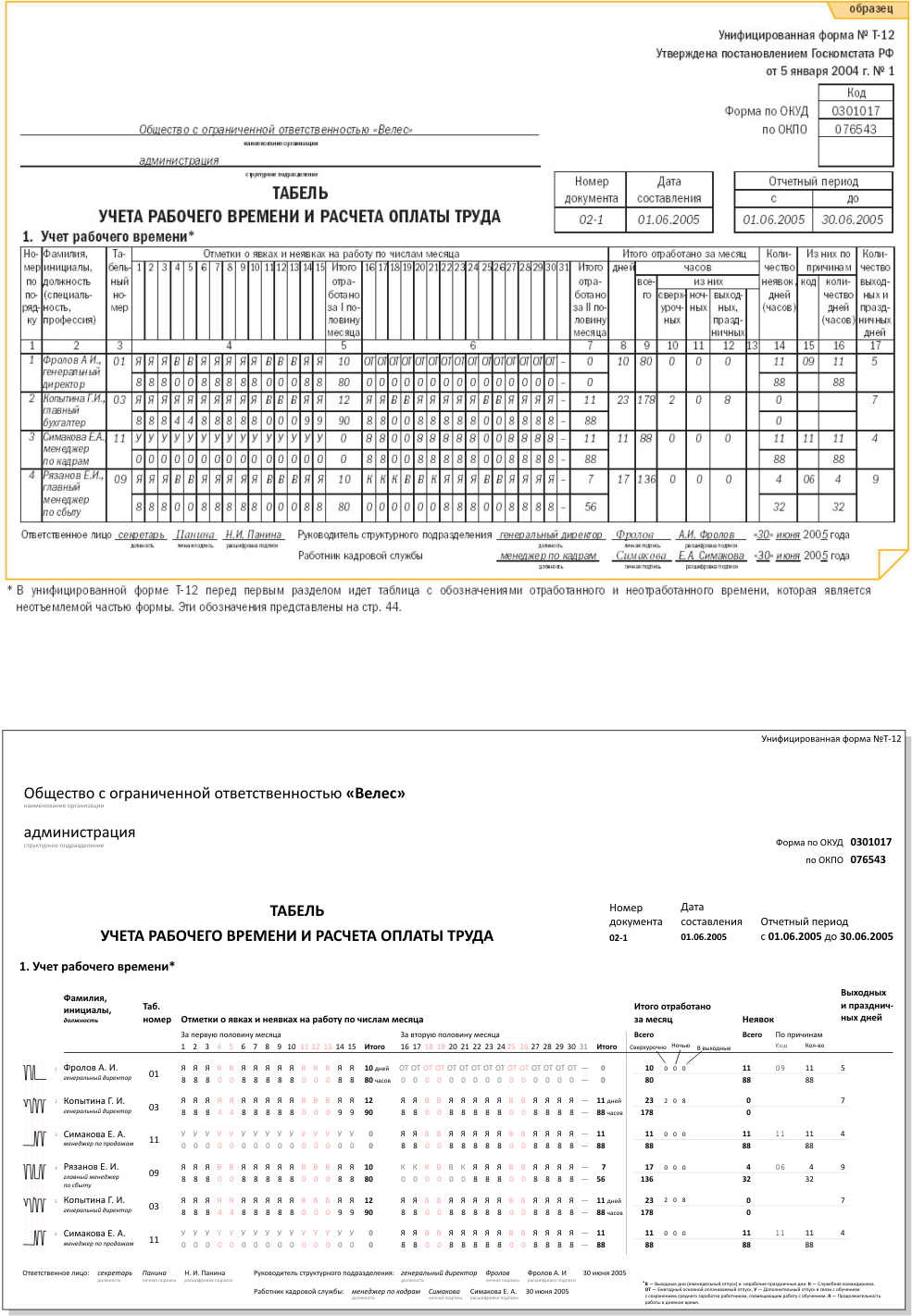 Дело в том, что форма Т-12 предназначена для ручного заполнения. Когда я узнал об этом, то нашёл человека, который регулярно (уже несколько лет) заполняет табель вручную, и расспросил его. Я хотел сделать ещё итерацию и переделать форму так, чтобы ей было удобнее пользоваться при ручном заполнении, но не нашёл времени.