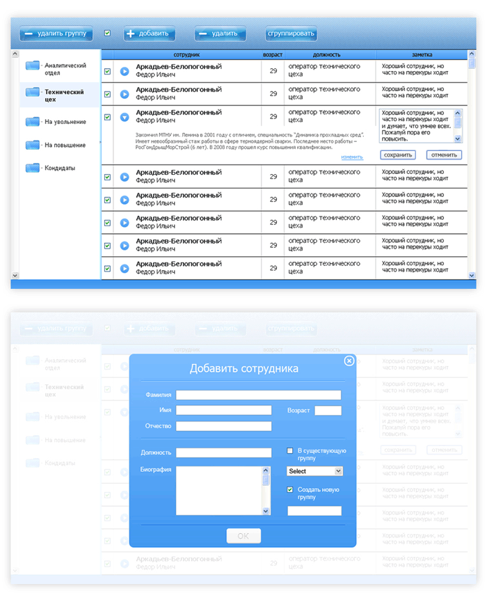Николай Товеровский, вы предложили способ избавиться от формы редактирования, но ничего не сказали о том, как в таком случае добавлять сотрудников.