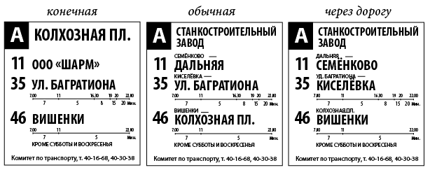 Можно ли как-то улучшить таблички с расписанием маршруток? Расположение на остановках, исполнение в один цвет.