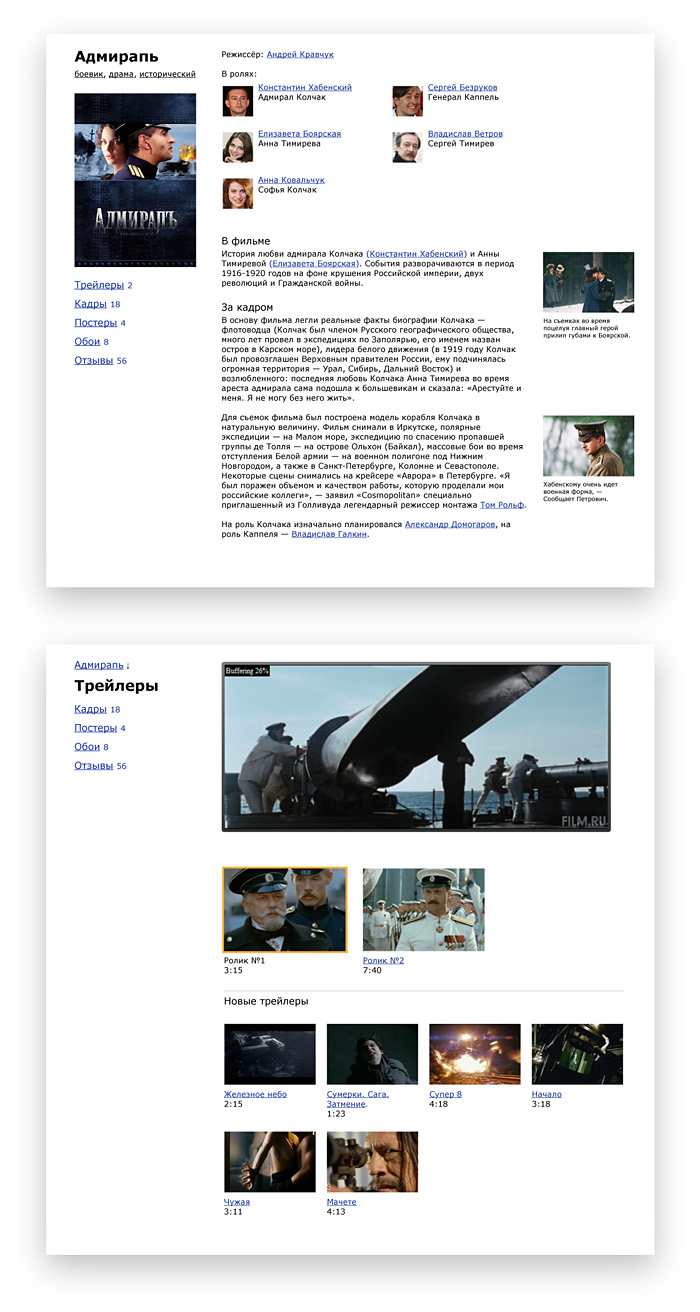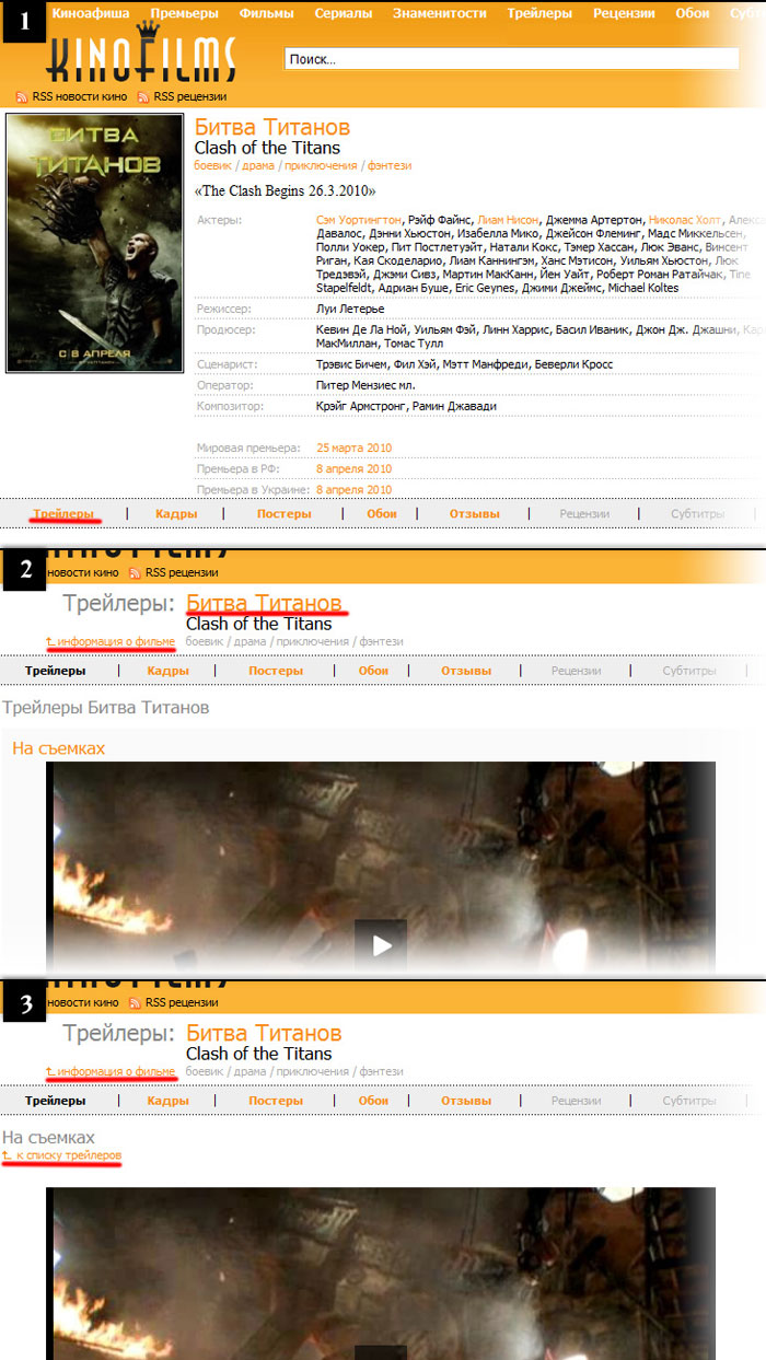 Суть такова: есть главная страница фильма, и к этому фильму есть вкладки «трейлеры», «кадры» и т. п. Перейдя на вкладку (или сразу попав на неё) — посетитель должен догадаться, как вернуться к описанию фильма (главной странице фильма). Наиболее очевидный вариант — добавить ещё одну вкладку — «описание», но это не очень симпатично. Подскажите пожалуйста — так, как сделали мы — достаточно ли очевидно? Спасибо!
