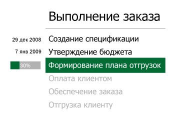 Вопрос, казалось бы, простой. Как отобразить стадии выполнения заказа? На картинке показана текущая реализация. Простая таблица с процентом выполнения по каждой стадии. Однако есть ряд нюансов: 1. Ужасная шапка. 2. Нет ощущения стадийности Как вариант — вертикальная черта с блоками, изображающими кажду. стадию |