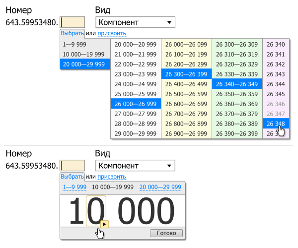 • Столкнулся с такой проблемой: необходимо сделать выбор номера из очень большого диапазона чисел, например, 1—29999 или 60000—99999 и т. п. Надумал два варианта: