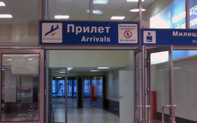 Навигационный знак зала прилёта в аэропорту «Толмачёво», Новосибирск.