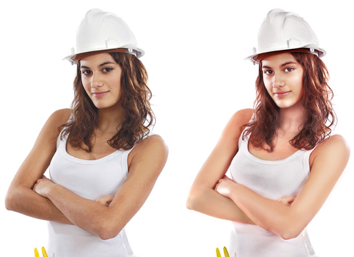 Можно пользоваться совершенно разными инструментами, добиваясь одного и того же результата. Мне, к слову, По поводу картинки. Её основная сложность в том, что рисующее и заполняющее освещение почти равной силы, и поэтому фотография получилась плоской. Плюс, судя по всему, неграмотно использовалась вспышка, которая оставила кучу паразитных жёстких теней, ломающих форму. Есть несколько моментов, которые можно поправить в готовой иллюстрации. В целом вся девушка слишком насыщена по цвету. И нужно проявить внимание к мелким деталям. Разберём самое основное: |