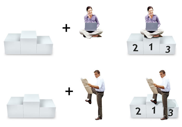 Зорко подмечаем, что дама несколько крупнее мужской особи. Учитывая, что бизнесмен находится к нам ближе девушки, поскольку стоит перед тумбой, он должен быть не только не меньше, а даже несколько крупнее по пропорциям. Ставим себе задачу уравнять их в правах на квадратный пиксель экрана :-).