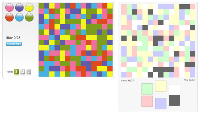 Я согласен с вашим решением перенести элементы управления и желанием «успокоить» цвета. Но я думаю, вы совершенно напрасно уменьшили динамический диапазон яркости палитры, сделав их одинаково светлыми. Ведь для игры важно видеть каждый цвет отдельно, различать его в общем «оркестре». Подумайте, как сложно было бы отличить на слух контрабасы от скрипок, если бы они вдруг начали играть на одной высоте.
