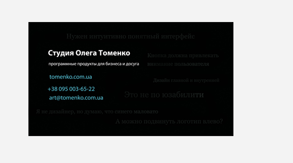 Максим! Мои визитки закончились пару лет назад, и с тех пор я не печатал себе новых, хотя не откажу в этом коллегам. |