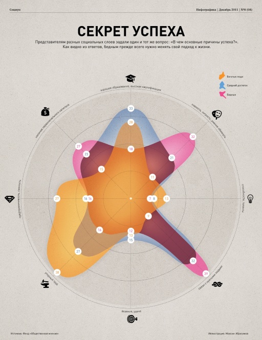 Мне кажется, хоть график выбран неверно, но со своей задачей «Показать различия в понимании причин успеха разными группами людей» он справляется на ура.
