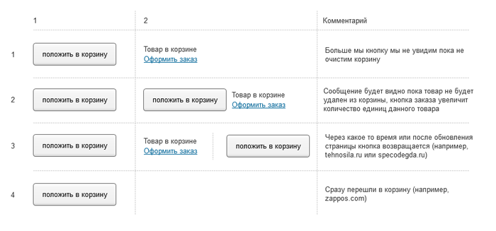 2. В таком виде эта кнопка — косяк интерфейса, потому что мне нужно включать мозги. Что произойдет если я ее нажму? Может быть, ничего, и я просто скажу ещё раз, что хочу это купить, а может быть, добавится ещё один ненужный пылесос, который я в лучшем случаю вычищу из корзины при покупке, а в худшем куплю не глядя, и ошибка интерфейса станет моей ошибкой и моей проблемой. Если назвать кнопку «доложить в корзину», то это будет хороший интерфейс для меня, пылесосного снабженца небольшой компании. Или для покупки редких сигарет, например.