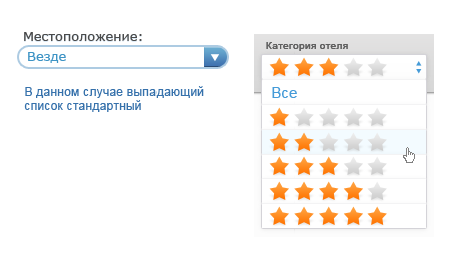Для второго элемента с вашей картинки(выбор количества звёзд) ни стандартный селект, ни Chosen не подойдут — придётся написать его самостоятельно.