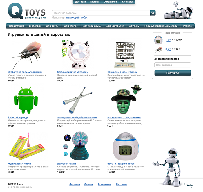 Задумал сделать простенький магазин игрушек без регистрации, с заказом в 3 клика (в корзину → номер телефона → получить, спасибо разработчику этой крутой штуки). Извлёк из себя картинку этого всего.