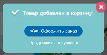 В некоторых интернет-магазинах натыкаюсь на такое окошко. При нажатии кнопки «Купить» или «В корзину» появляется окно, в котором мне предлагается сразу оформить заказ или продолжить покупки.