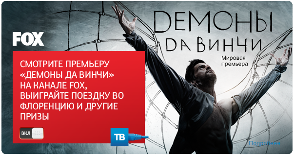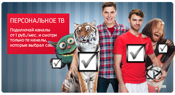 На плакате герои иллюстрируют выбранные каналы: «детский» (зверек слева) и «музыкальный» (музыкант справа), но сами подписи выстроены вертикально. Это тоже нарушает логическую связь в данной рекламе.