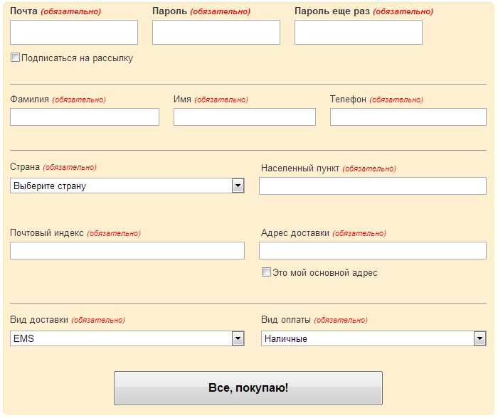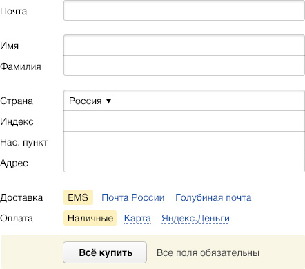 Всегда лучше подумать о том, как сделать форму короче за счёт сокращения числа полей, особенно если речь идёт о покупке в |