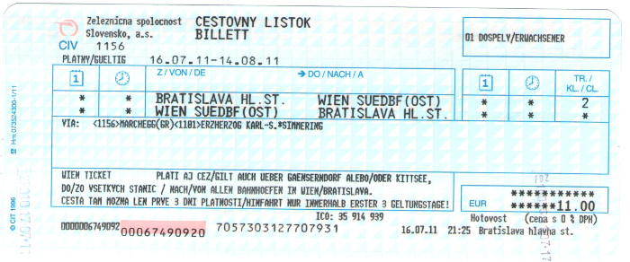 Также действителен для маршрутов через Gänserndorf или Kittsee [всего есть три маршрута ж/д-сообщения между Братиславой и Веной], от/до всех ж/д-станций в Вене/Братиславе.