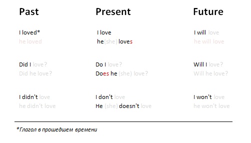 Поменять колонки местами никто не мешает, но там и в самих ячейках полный бардак, не способствующий запоминанию. Сколько бы не говорилось о повышении информативности путём убирания всего лишнего и вынесения за скобки, но нельзя не признать, что языки мы учим, запоминая фразы и строя другие по аналогии. Так что превращать предложения в ребусы нельзя. Я написал все случаи целиком, но выровнял и подкрасил всё так, чтобы одинаковые части было легче вычленить взгляду: