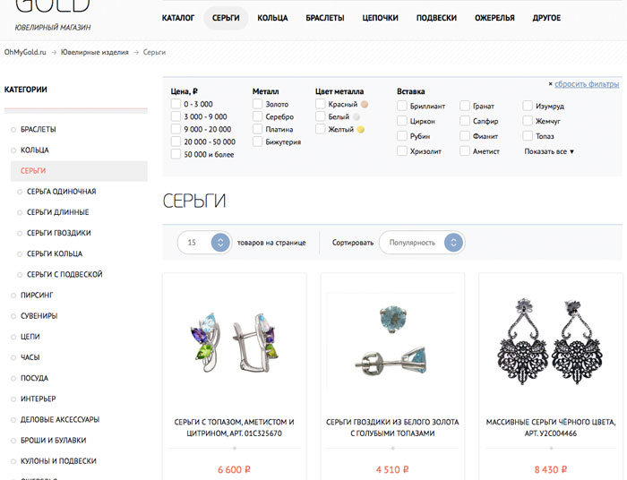 Посетитель ювелирного интернет-магазина ожидает встретить украшения, а не чекбоксы.