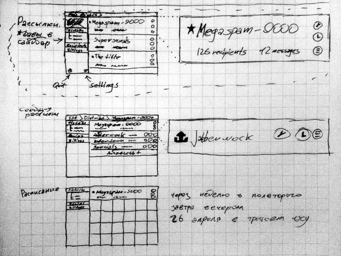 Многие не любят прототипировать на бумаге, но для меня это что-то вроде фетиша. Мне нравится зачёркивать и перерисовывать неудачный микропрототип несколько раз. А его размеры позволяют не тратить на это много времени, что вытекает в 5-7 итераций за полчаса шуршания в блокноте.