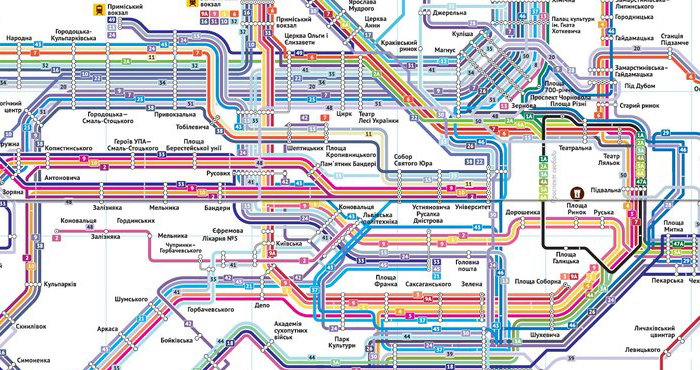 Самое сложное — тщательно подобрать цвета всех маршрутов так, чтобы в каждом пучке был максимальный контраст: