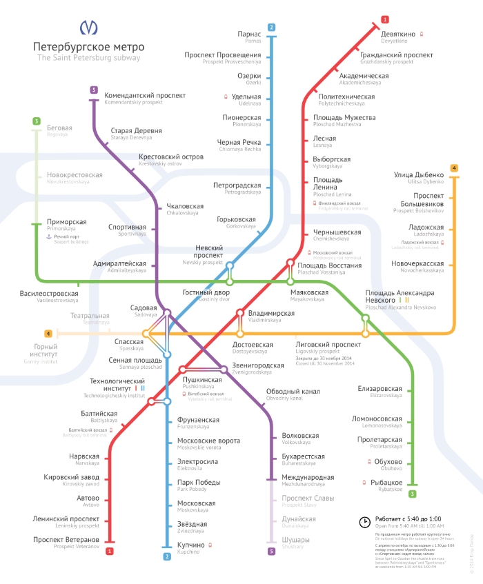 Ещё одно улучшение — сделать переходы между станциями правдивыми по длине. От Пл. Восстания до Маяковской идти неблизко, а Достоевская и Владимирская совсем рядом, притом тут важно руководствоваться не геометрическим отдалением на карте, а субъективным ощущением горожанина. Если удастся к правдивой длине переходов добавить и правдивое их соотношение по сторонам света, будет вообще прекрасно.