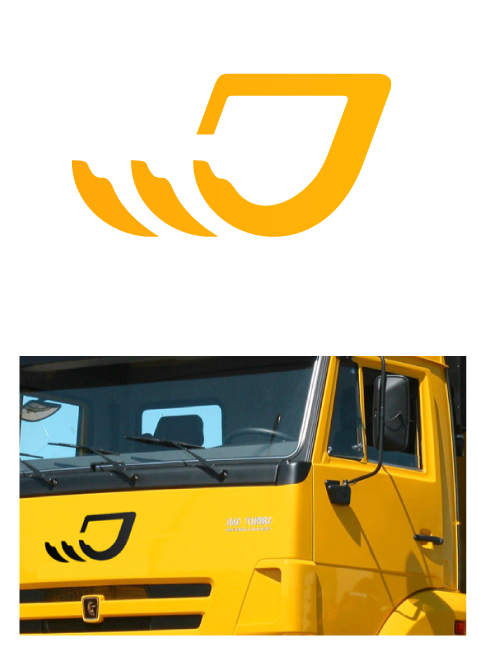 Вы можете задать гибкие правила и не привязывать знак к надписи. Пусть они по отдельности присутствуют на кузовах. Ковш на капоте, название на дверях.