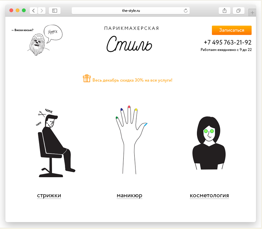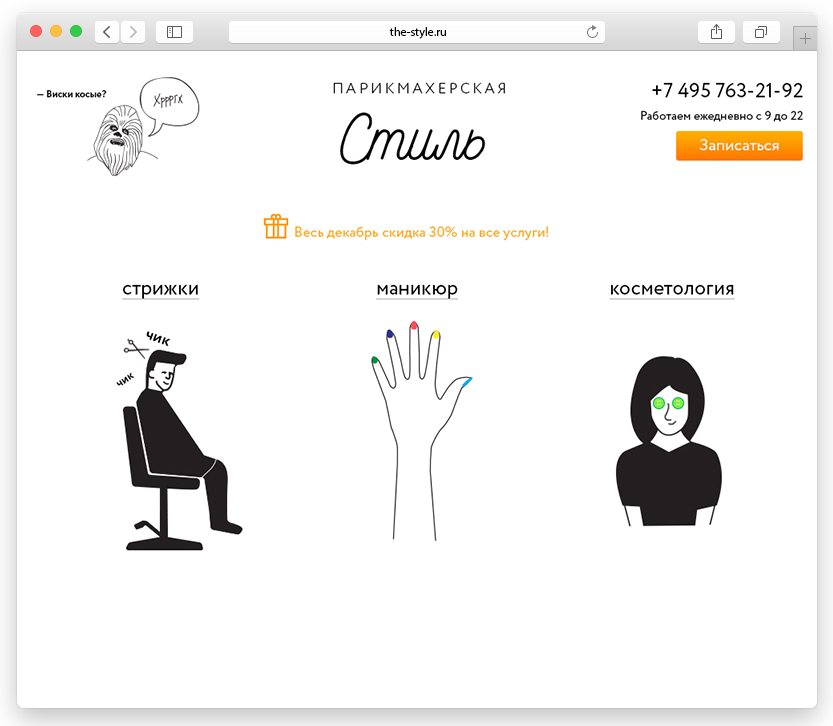 Подскажите, что не так с главной страницей для парикмахерской?