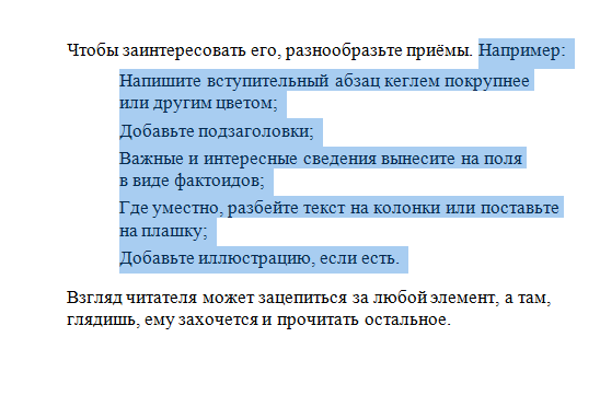 Можете рассказать о грамотном выделении слов или фраз в тексте, заголовках, списках?