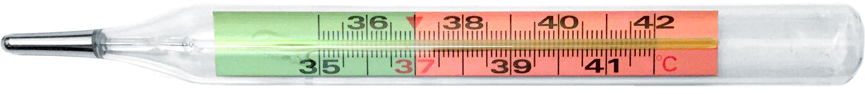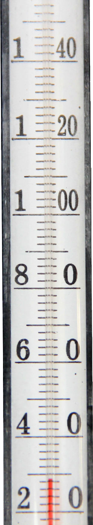 На вертикальных банных градусниках та же проблема решается менее изящно. Цифры тоже располагаются по обе стороны шкалы, так как ртутный столбик находится в центре, но при этом значения разорваны посередине:
