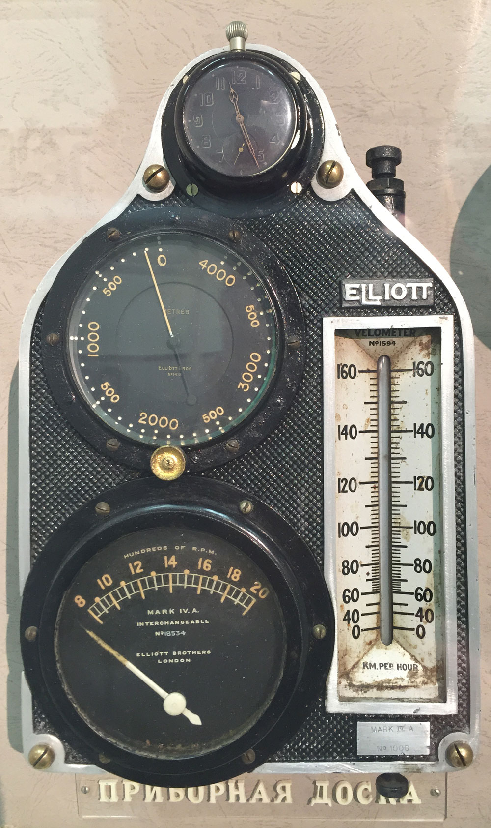 На старом самолётном приборе «Эллиот» для измерения скорости движения воздуха значения просто дублируются на двух сторонах шкалы: