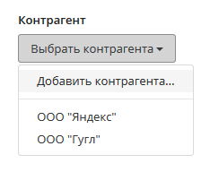 Спросим себя, появится ли новый контрагент сразу при выборе этого пункта? Я предполагаю, что ответ «нет» — сначала потребуется ввести его название. Тогда нужно поставить многоточие, но если у вас другой сценарий, примите решение по тому же правилу.