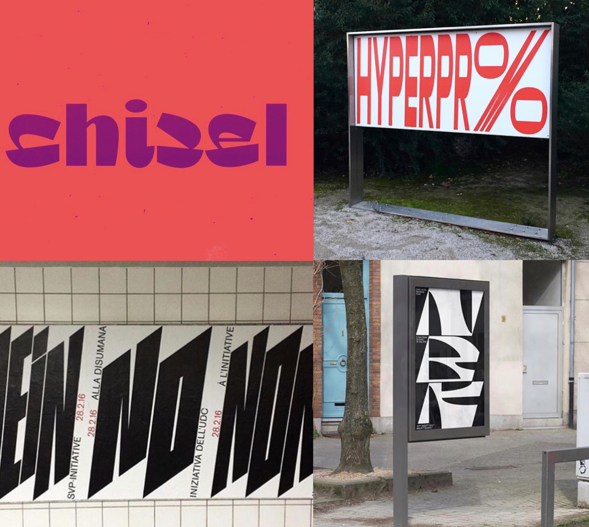 Часто Тайпкукер предлагает противоречащие друг другу параметры, например: экстрасветлое начертание, но с большим контрастом, или курсив, но с очень широкими пропорциями. Мне кажется, круто не отступать, а стараться перенести все такие противоречия в свою надпись.
